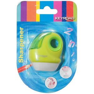 Keyroad Πλαστική ξύστρα KEYROAD Duo Sharpy, πολυλειτουργική, μονή, με δοχείο, blister, μίξη χρωμάτων