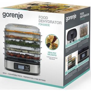 Gorenje | Αποξηραντής Τροφίμων | FDK500DE | Ισχύς 380 W | Αριθμός δίσκων 5 | Έλεγχος θερμοκρασίας | Ενσωματωμένος χρονοδιακόπτης | Ανοξείδωτο ατσάλι