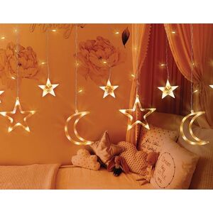 PR Κουρτίνα φωτισμού LED, Αστέρια και φεγγάρια, ζεστό λευκό φως