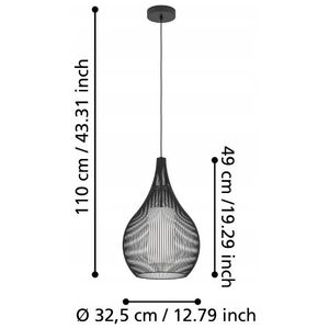 Pendant lamp EGLO Razoni, 1 x E27, 40W, black, o32.5 x h110 cm
