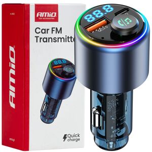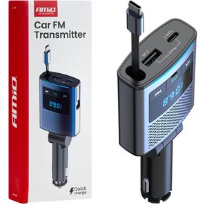 Transmiter samochodowy fm 1×usb-a 1×usb-c 12v 24v amio-04655