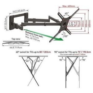 Barkan BARKAN VTM464L 13"-90" TV, 4 αρθρώσεις, με κεραία, τοίχου, μαύρο, πολύ μακρύ