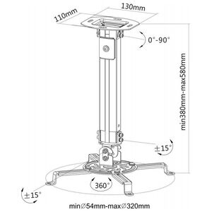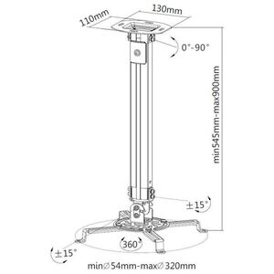 Ρυθμιζόμενη βάση προβολέα Techly 55-90 cm, οροφής, ασημί (309661)